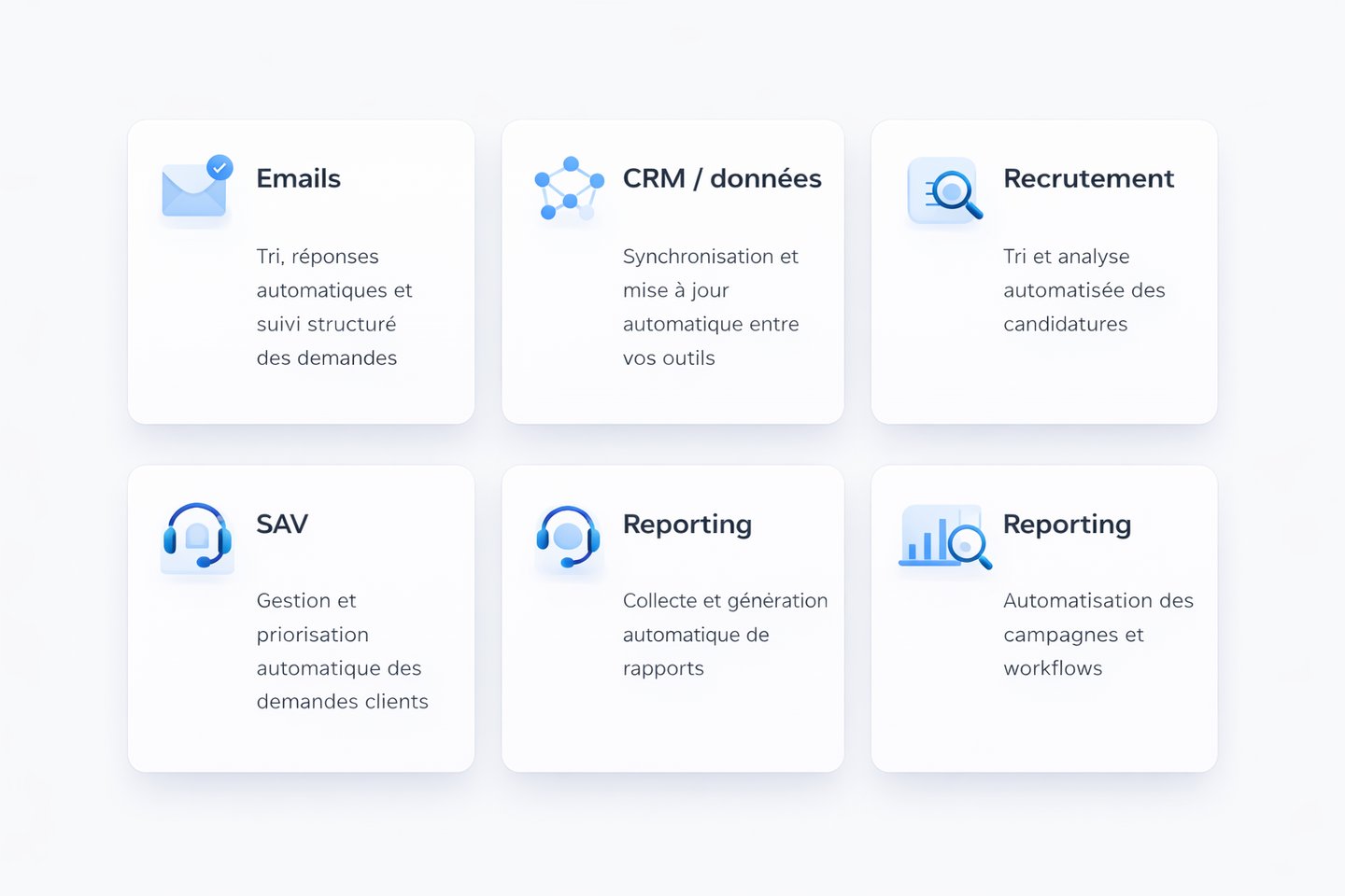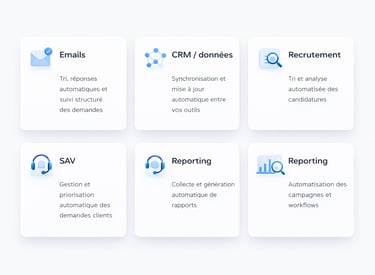 Diagnostic auprès des équipes pour identifier précisément les freins, inefficacités et tâches à automatiser en priorité.